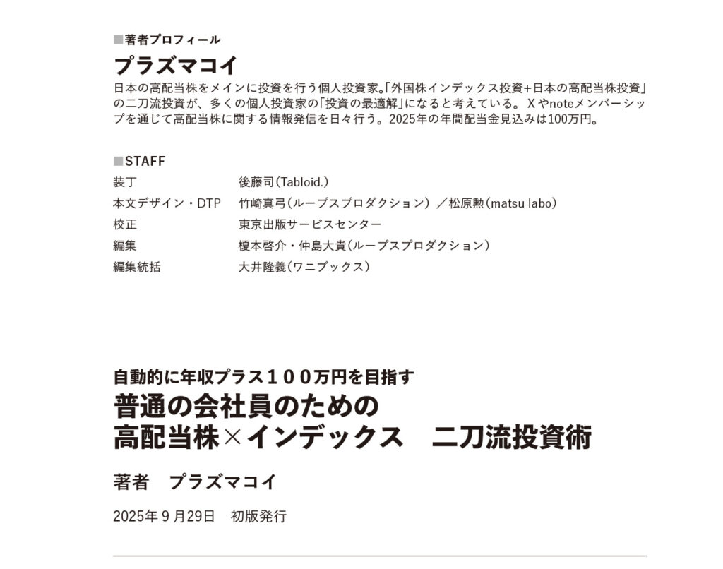 普通の会社員のための高配株✕インデックス 二刀流投資 2025.11.012025.11.14 普通の会社員のための高配当株×インデックス 二刀流投資術 – 自動的に年収プラス100万円を目指す -【電子書籍】[ プラズマコイ ] created by Rinker ¥1,760 (2025/12/27 05:14:24時点 楽天市場調べ-詳細) Amazon 楽天市場
